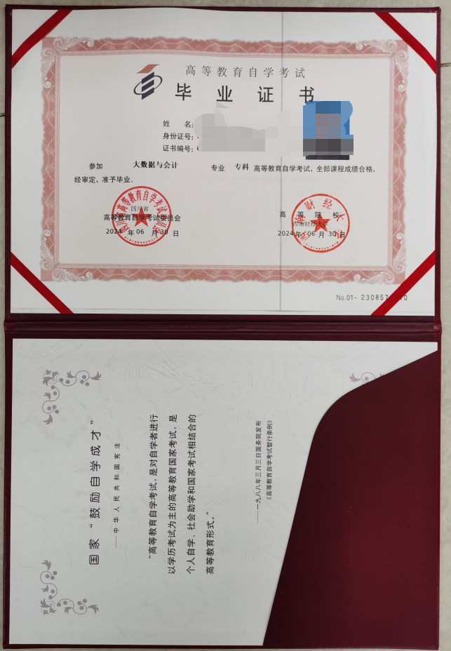 毕业后由西南财经大学与四川省高等教育自学考试委员会联合颁发毕业证书,符合条件的本科毕业生可申请学士学位。证书在考研、考公、评职称、求职、积分落户等方面均可使用。