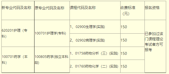 三、2021年下半年福建医科大学自考实践性环节考核报考科目、收费标准、报名资格(见表一、表二)