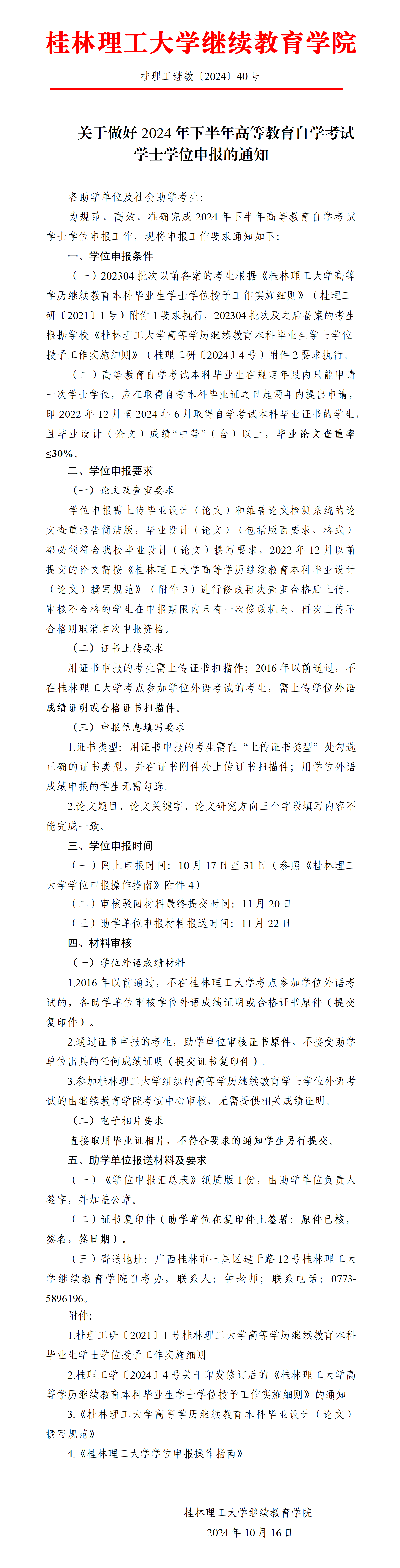 2024年下半年桂林理工大学自考学士学位申报的通知