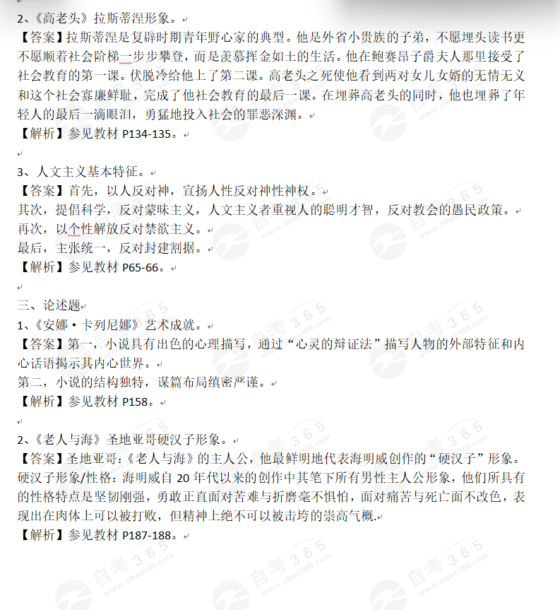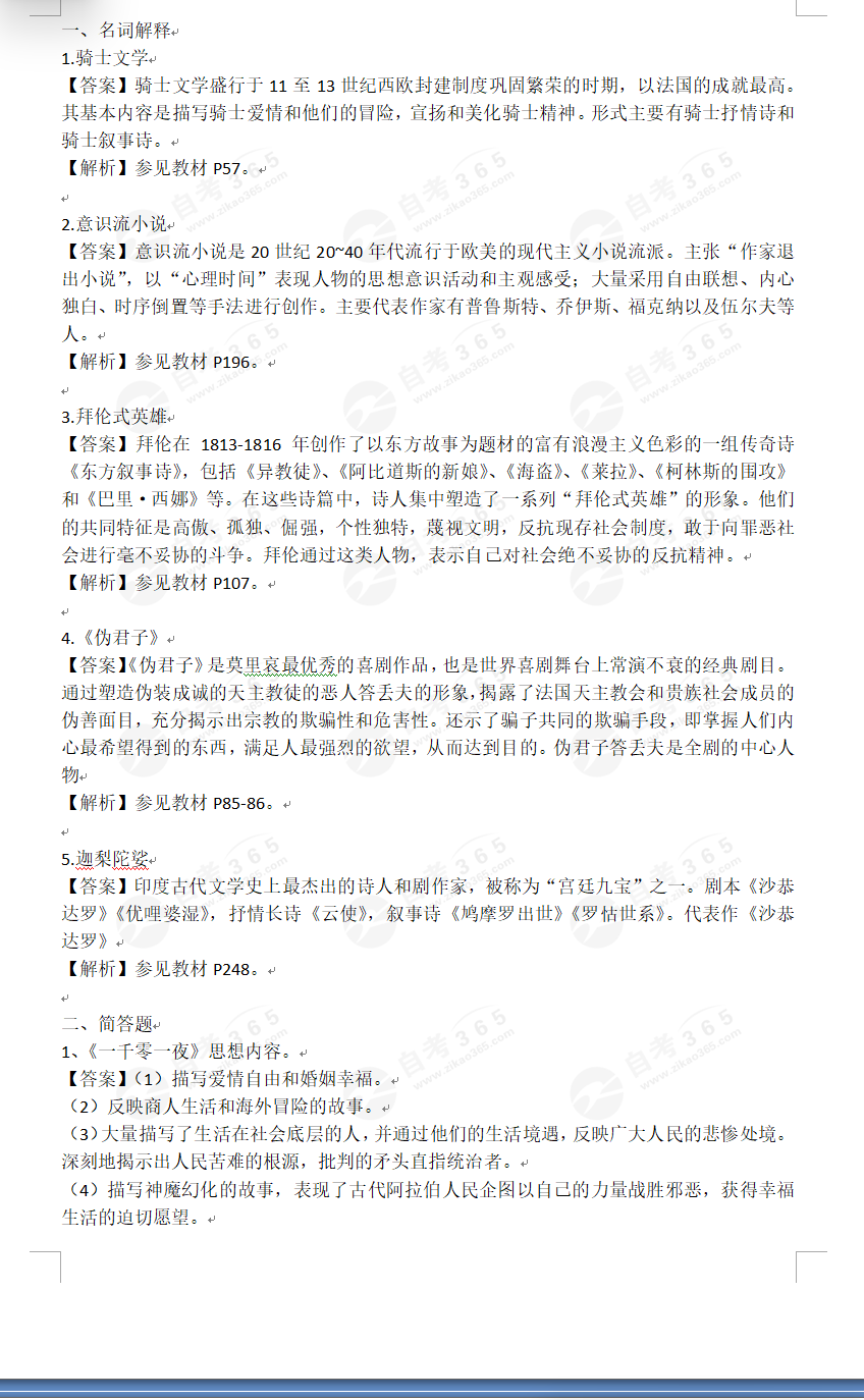2025年10月自考外国文学史部分试题及答案(考友回忆版)