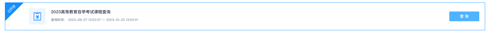 选择申请项目列表中的“2023 高等教育自学考试课程查询”,并点击“查询”按钮。