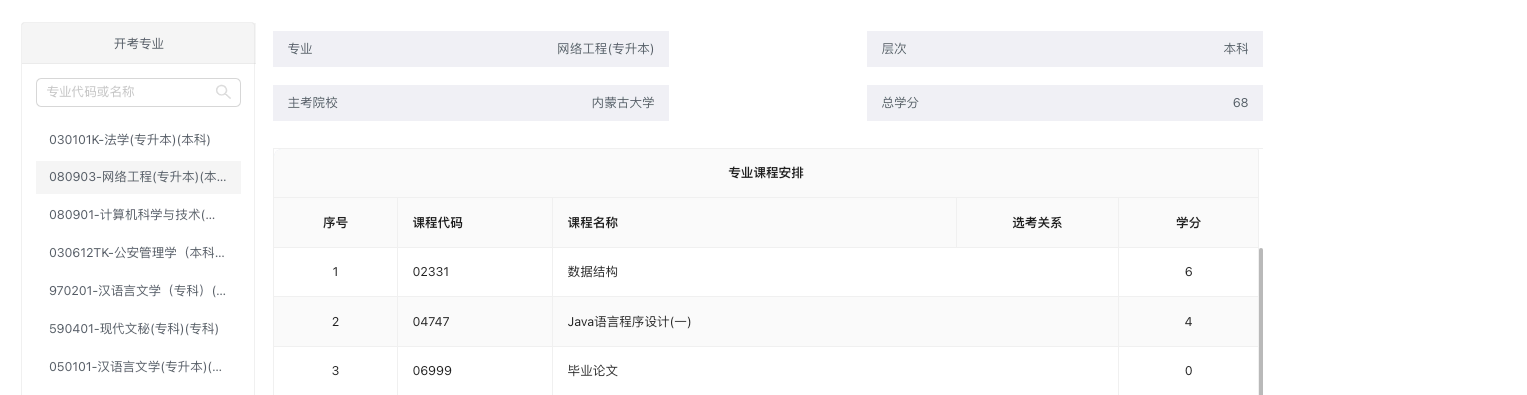 考试专业查询