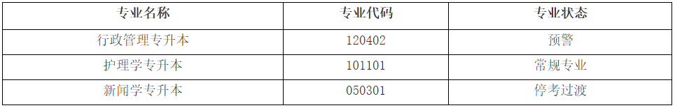 行政管理专升本专业进入预警阶段。请各位新考生谨慎报考。
