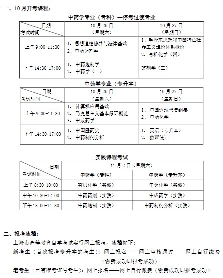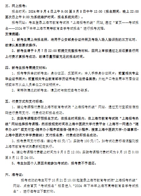 2024年10月上海中医药大学自考中药学专业报考事项说明1