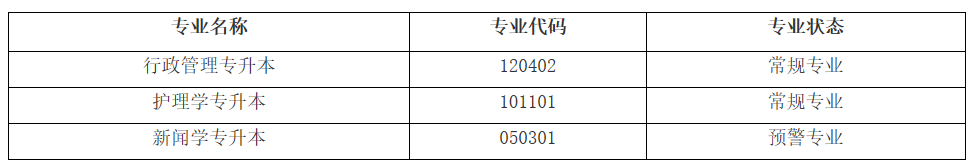 我校本次开考常规专业有行政管理专升本、新闻学专升本和护理学专升本。