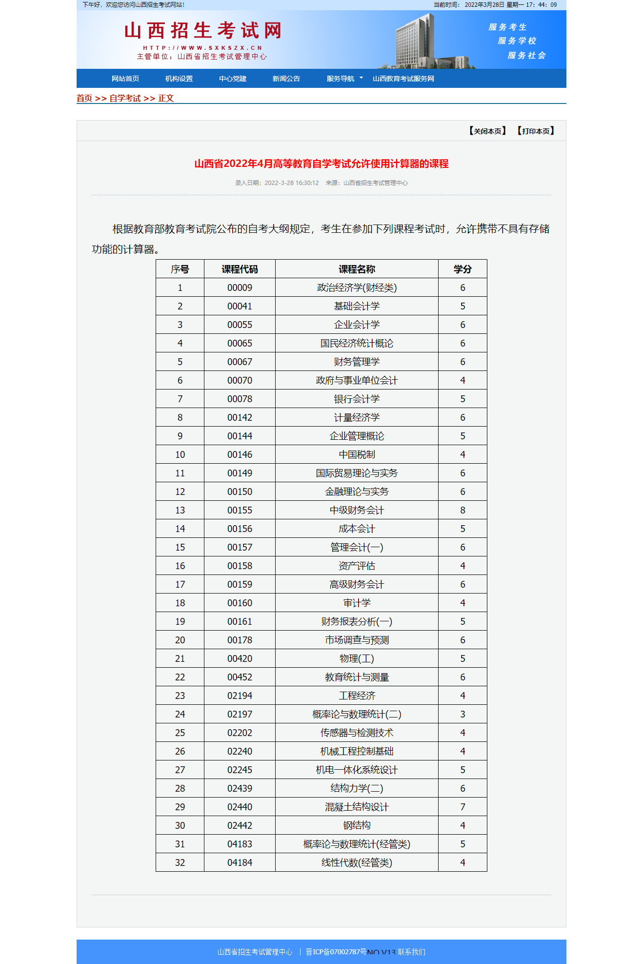 根据教育部教育考试院公布的自考大纲规定,考生在参加下列课程考试时,允许携带不具有存储功能的计算器。