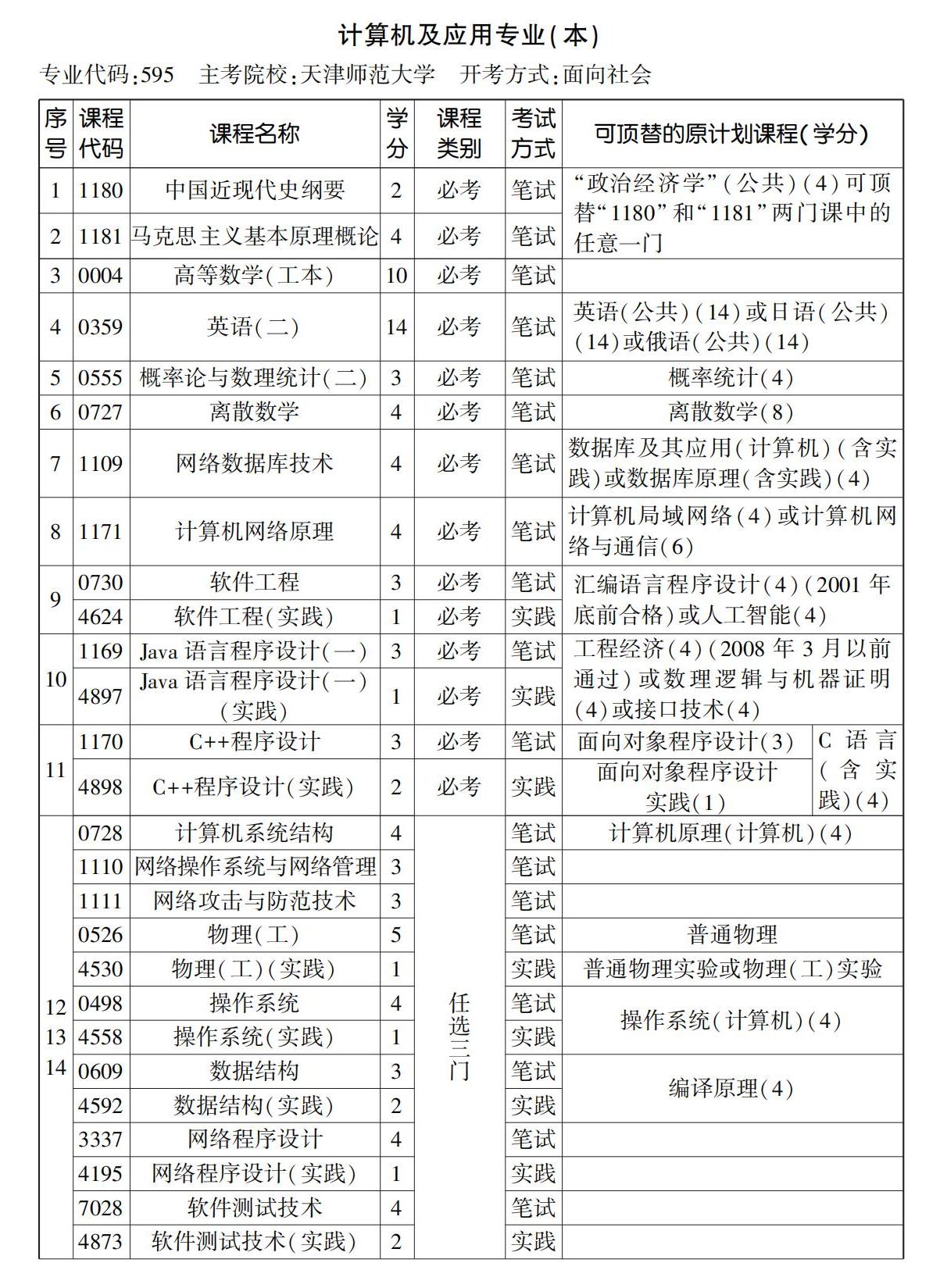 2023年10月天津自考本科计算机及应用专业计划