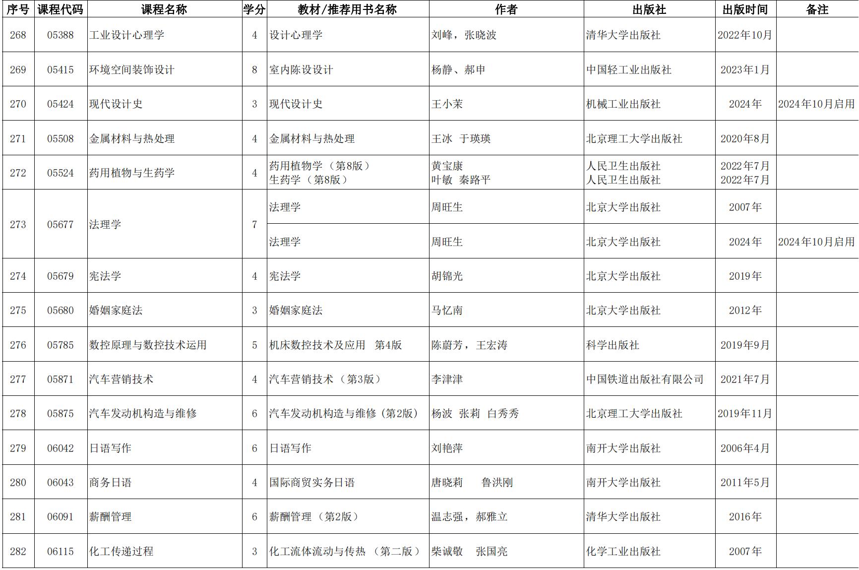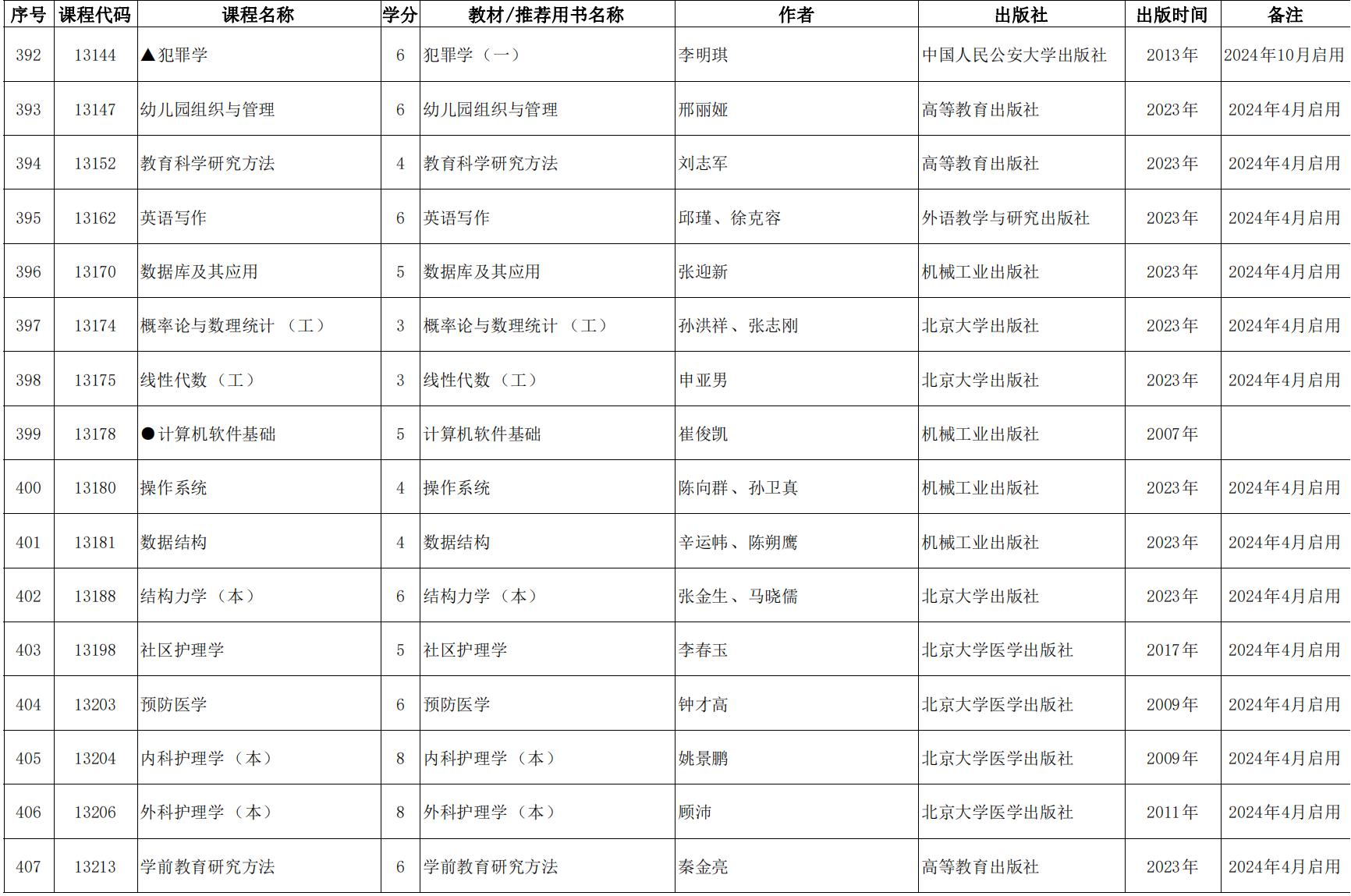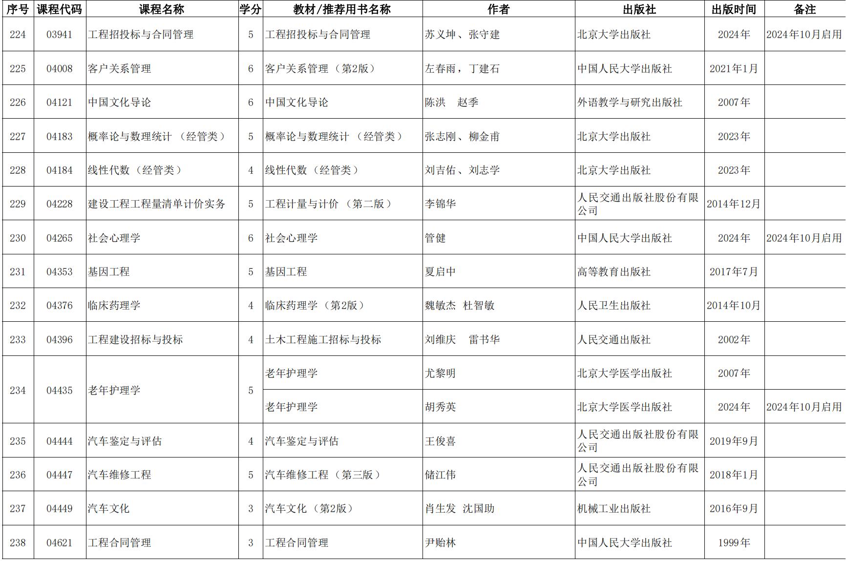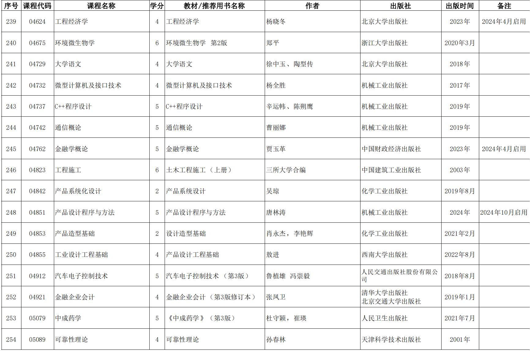 2024年天津市高等教育自学考课程使用教材表发布(点击下载),详情如下: