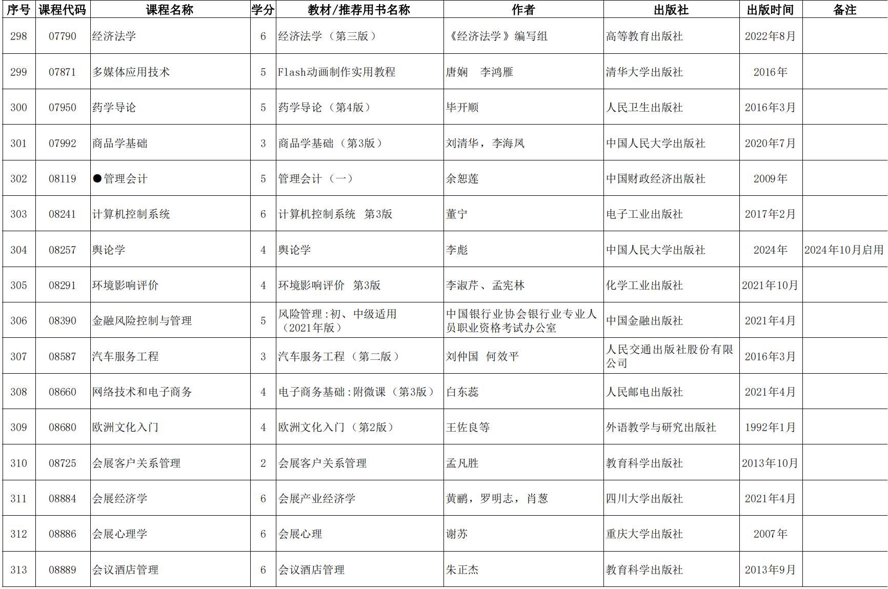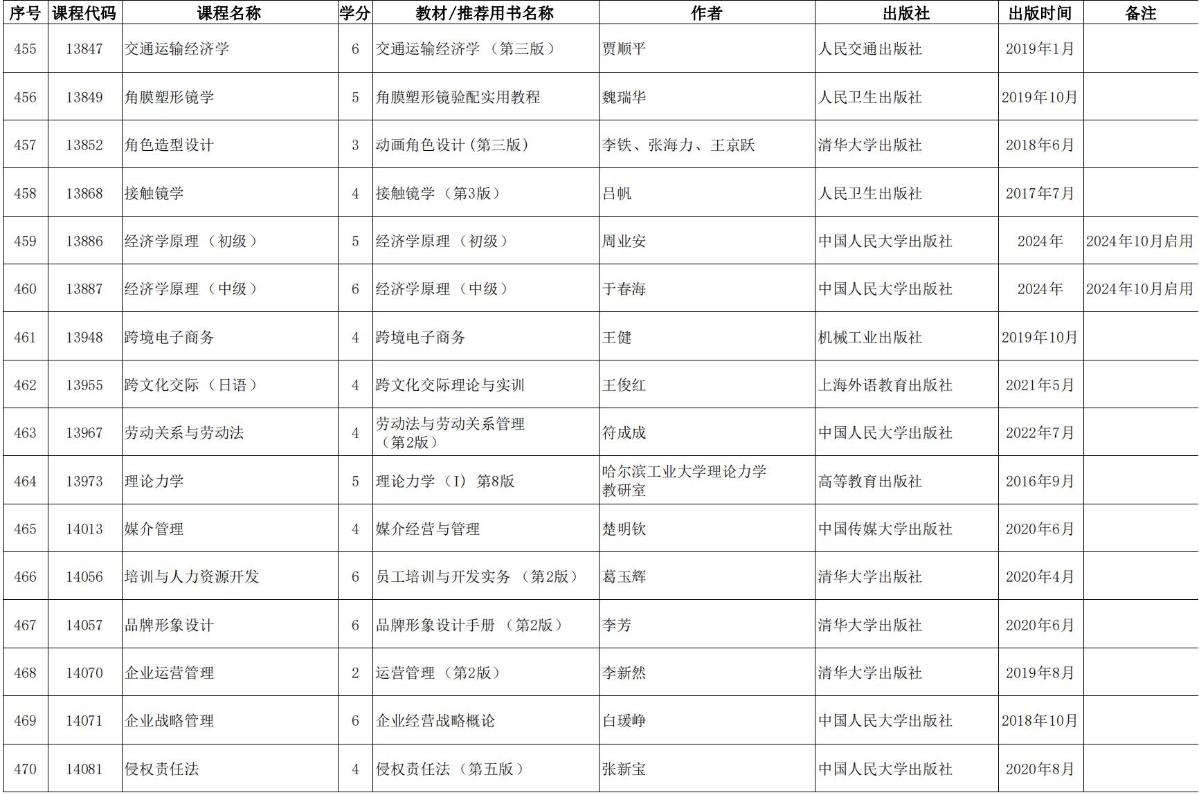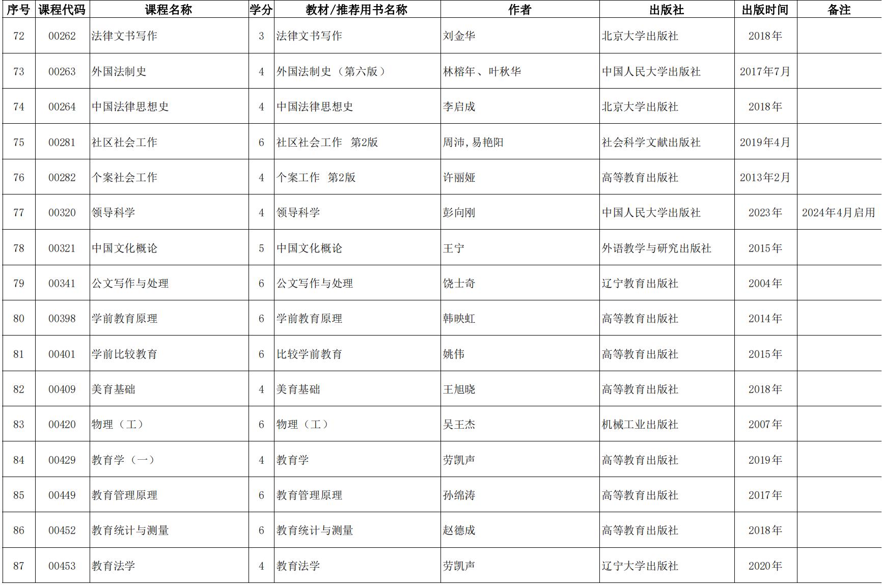2024年天津市高等教育自学考课程使用教材表发布(点击下载),详情如下: