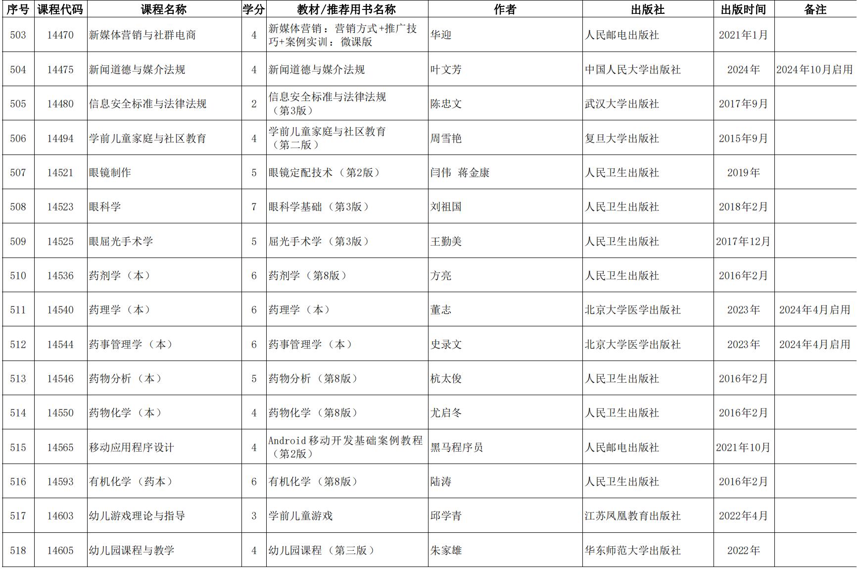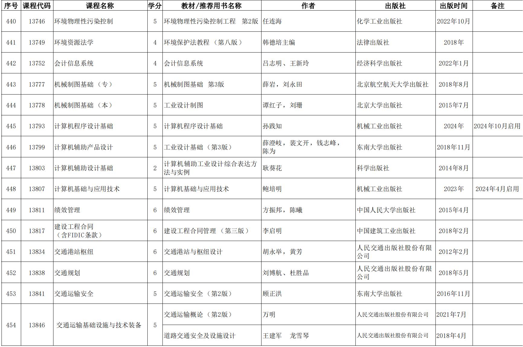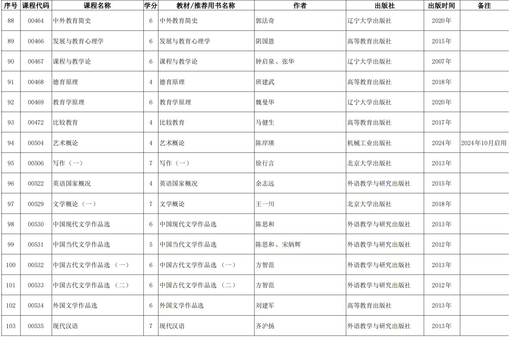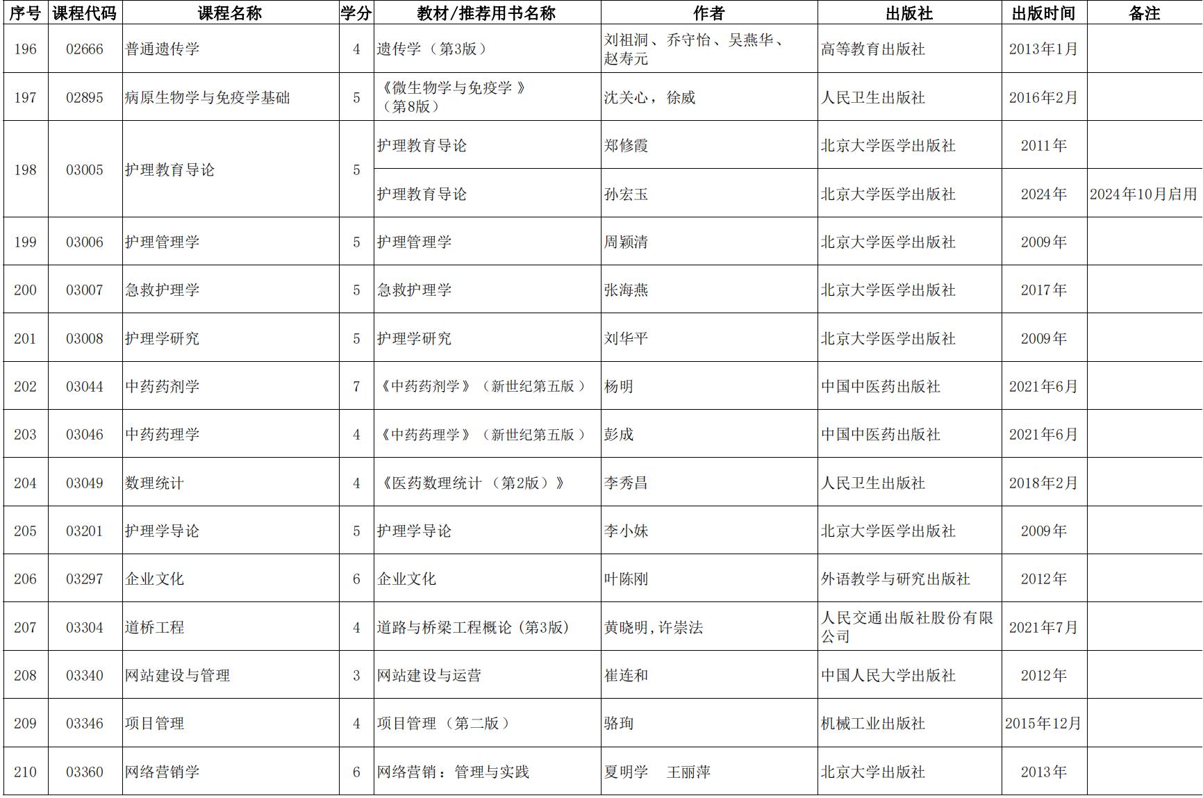 2024年天津市高等教育自学考课程使用教材表发布(点击下载),详情如下:
