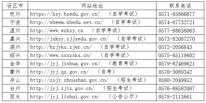 浙江各设区市教育考试机构网站地址及联系电话